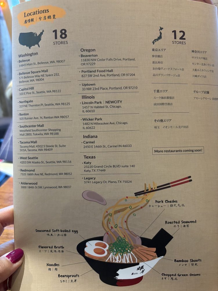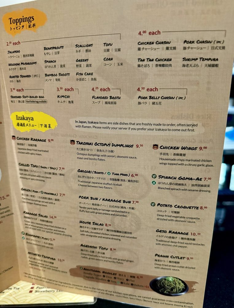 Rich, Hakata-style pork broth topped with pork belly, wood ear mushrooms, green onions, and sesame seeds.