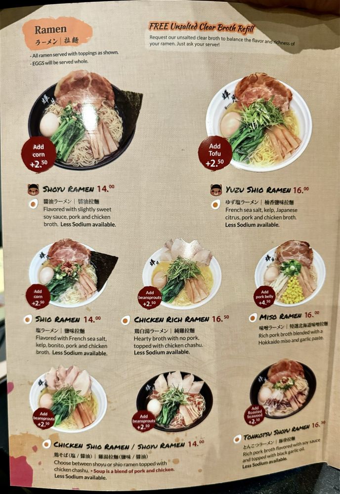 鶏そば 純雞拉麵 | Choose between shoyu or shio ramen topped with chicken chashu.